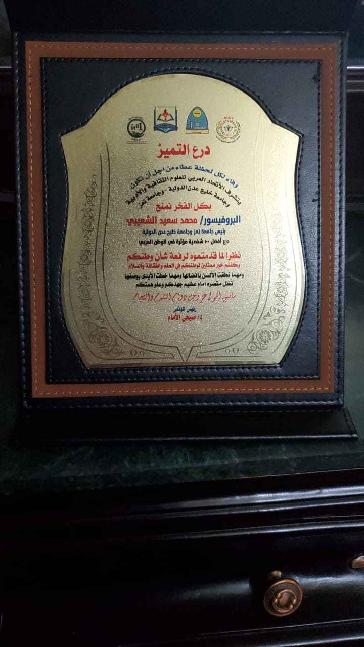 غير مصنف من بين أفضل 100 شخصية على مستوى الوطن العربي *الإتحاد العربي للعلوم الثقافية والأدبية يختار البروفيسور الشعيبي رئيس جامعة تعز ... 25 ديسمبر، 2024